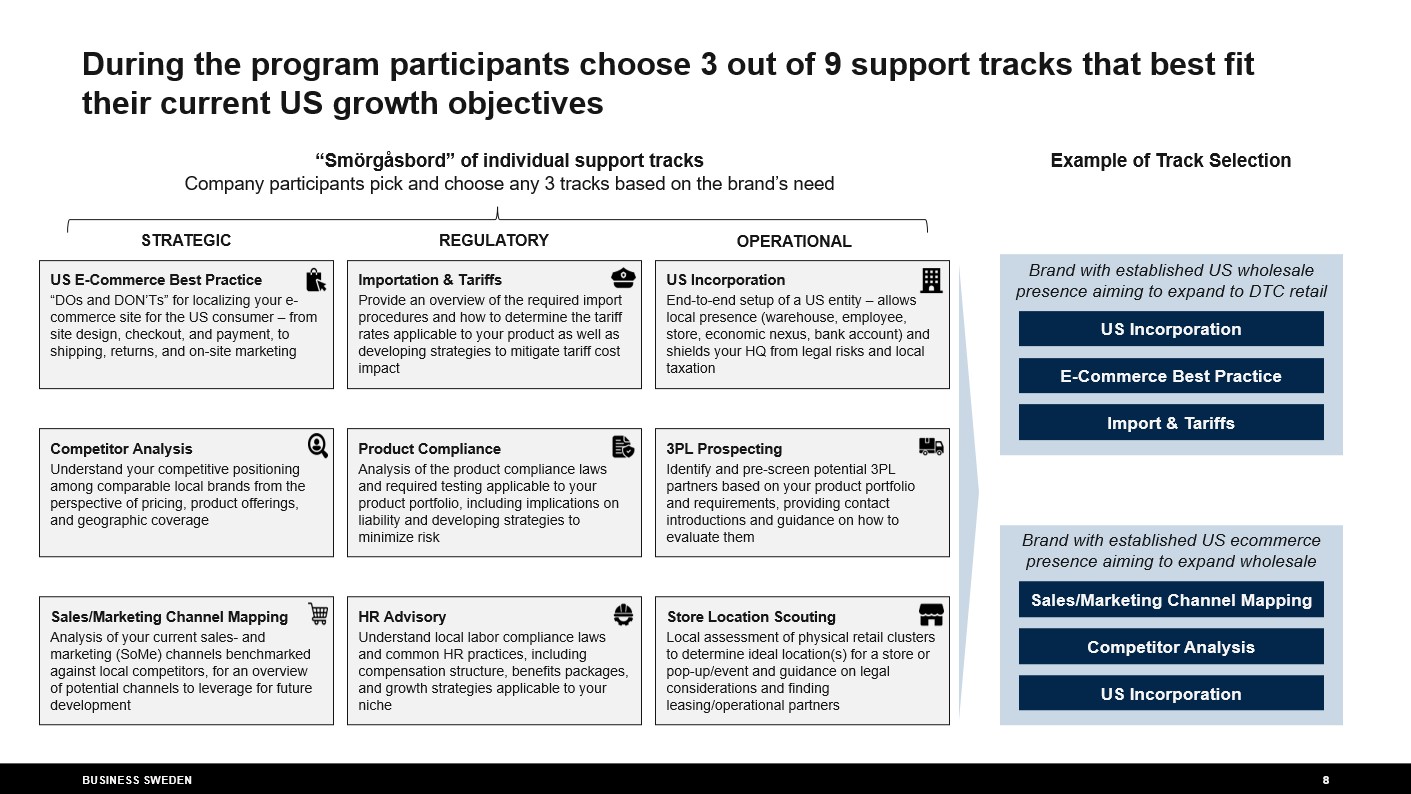 - Five flexible 1:1 coaching sessions with Business Sweden coaches with extensive experience in the US consumer goods sectors