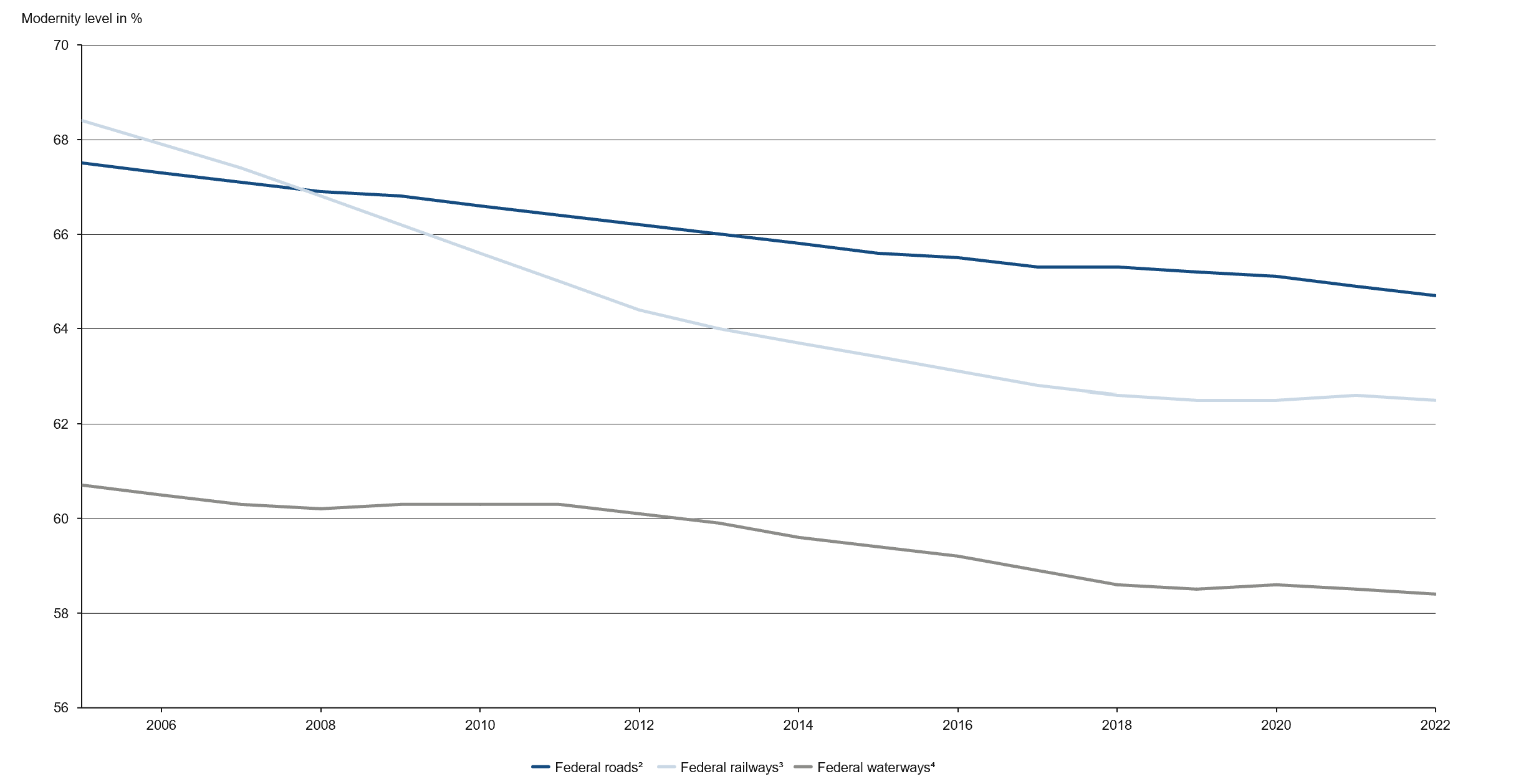 Figure 1: Declining modernity levels1 due to low infrastructure investments