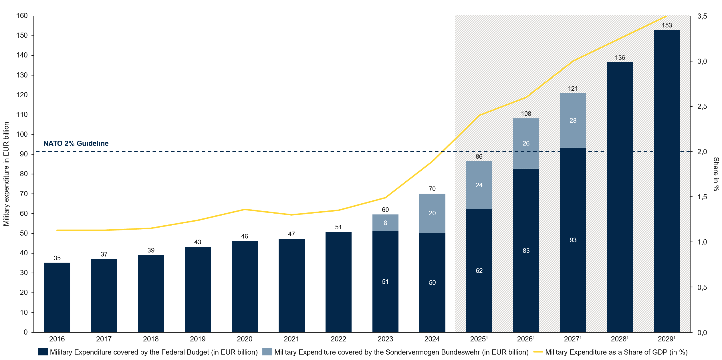 The SVIK will contribute to NATO’s goal of allocating 1.5% of GDP to infrastructure investment. Germany’s total defence budget is projected to surpass EUR 152.8 billion by 2029, reaching 3.5% of GDP that year.